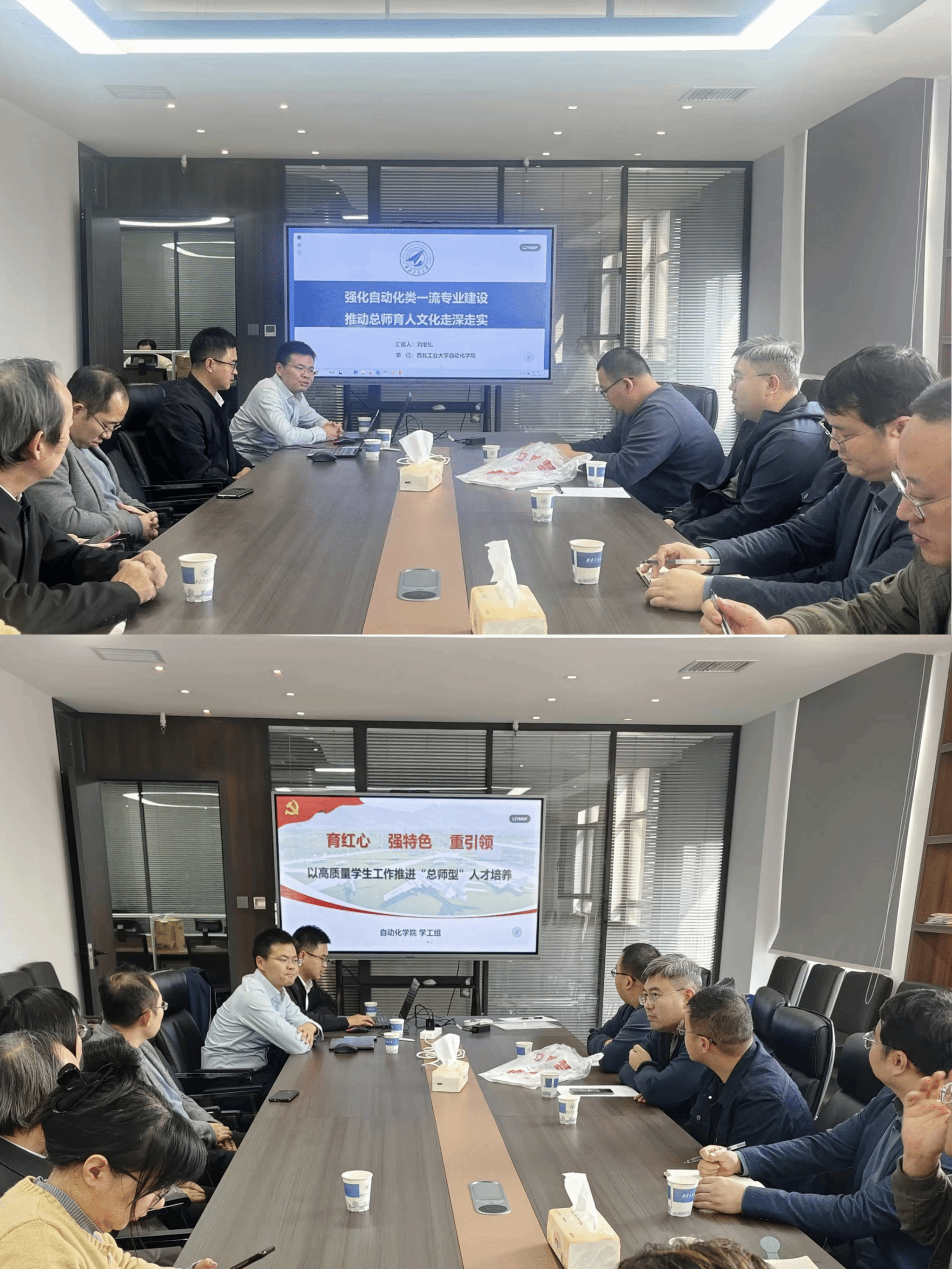 会上,刘准钆首先传达了公司“总师育人文化”引领人才培养的顶层设计及推进情况,然后以《强化自动化类一流专业建设 推进总师育人文化走深走实》为题,介绍了公司坚持以一流专业建设为牵引,持续推进“总师育人文化”引领人才培养的思路和举措。易正阳阐述了公司“总师育人文化”的特质内涵及培养路径,然后从“育红心”“强特色”“重引领”三个维度展开,重点围绕学风建设、创新创业、社会实践、思政育人四个方面内容,系统讲述了公司以高质量员工工作推进“总师型”人才培养的系列举措。