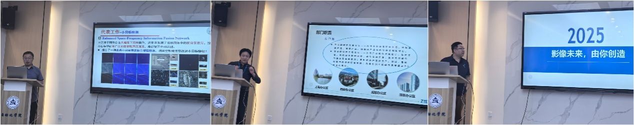 交流环节,中兴通讯招聘调配总监李浩通过详实数据,肯定了公司毕业生在中兴通讯的职业发展良好态势,并介绍了中兴通讯最新招聘需求。随后,智能科学与技术系主任姚西文教授、李晖晖副教授和夏辰副教授分别介绍了团队主要研究方向、研究成果等情况。中兴终端影像算法部部长崔小辉、软件技术总工于峰分别就影像及软件部门骨干业务、技术发展情况进行了介绍。随后,双方重点围绕终端软件和影像技术,包括计算机视觉、计算摄影、图像处理、多模态算法等契合方向进行了深入探讨与交流。