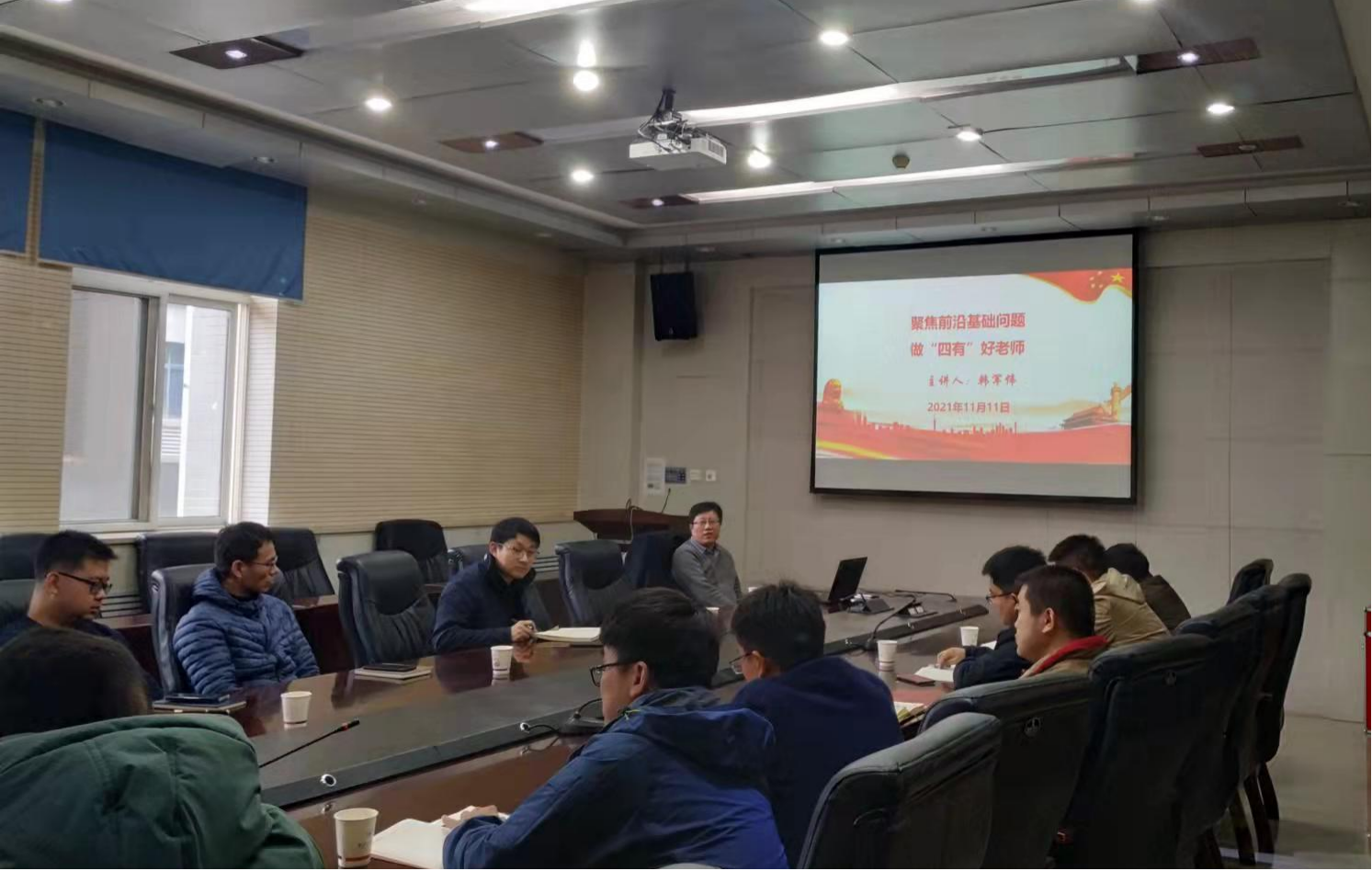 会上,韩军伟结合习近平总书记关于教育工作的重要论述,以“国之大者”角度为切入点,从聚焦前沿基础问题等方面,向青年教师提出做“四有”好老师的要求,并就青年教师面临的基金申报工作进行详细指导,他结合自身基金申报经验和基金委相关工作经历,向与会老教师系统、详尽的剖析了基金申请从选题、申请书撰写到答辩的全流程以及整个过程中的重点环节,特别强调选题是基金申请成败的关键,要抓住创新性和研究基础这两个关键点。此外,他还通过分析项目申请中的认识误区和不当做法,列举多种实用接地气的正、反面案例,使参会老师们更加深刻的理解了国家自然基金项目申报的特点和申报技巧。