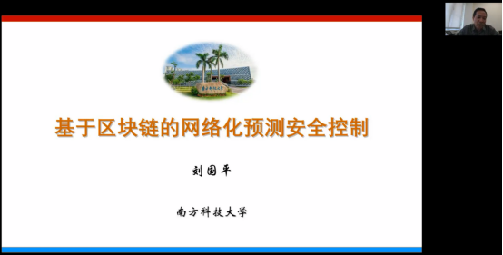 刘国平教授作“基于区块链的网络化预测安全控制”的主旨报告,主要讨论基于区块链技术的网络化系统对数据攻击的预测安全控制,着重介绍了主动补偿控制策略,以及基于区块链技术对网络化系统进行预测安全控制的策略方案。