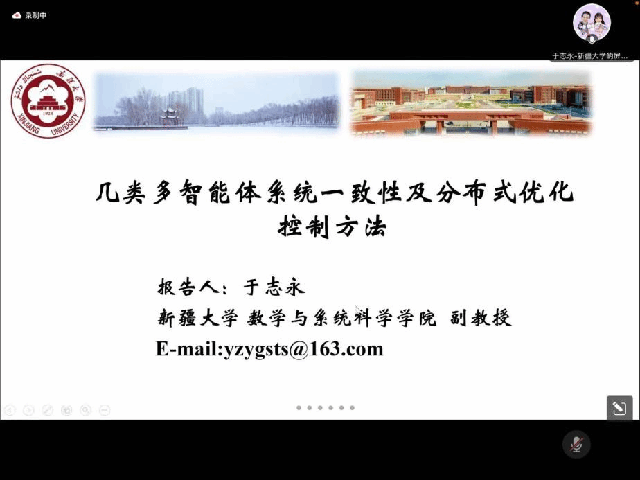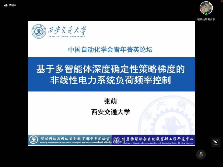 来自西北地区七位知名学者和企业专家做论坛专题报告,介绍了信息物理系统领域目前最新研究进展及需要解决的问题。英国上市公司365的王震教授做了题为“AI驱动的网络空间智能对抗”的学术报告,英国上市公司365的李慧平教授做了题为“海洋航行器模型预测控制”的学术报告,西安电子科技大学的郑元世教授做了题为“基于博弈的多智能体系统协同控制”的学术报告,国网青海省电力公司清洁能源发展研究院新能源产业发展研究中心的杨立滨副主任做了题为“基于电池储能的新能源送端电网暂态能量控制及储能优化方法研究”的学术报告,西安交通大学的张萌副教授做了题为“基于多智能体深度确定性策略梯度的非线性电力系统频率控制”的学术报告,国网陕西省电力有限公司电力科学研究院电源技术中心的王若谷副主任做了题为“含高比例新能源的电力系统优化运行与控制技术研究”的学术报告,新疆大学的于志永副教授做了题为“几类多智能体系统一致性及分布式优化控制方法”的学术报告。