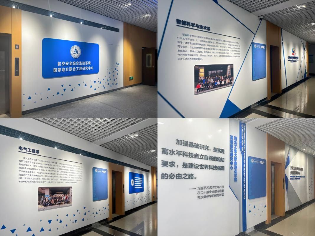 以文化人,为自动化印记添彩增色。在二楼报告厅区域增设了师生活动形象展示墙,将师生对大好祖国河山、大美校园风光和日常精彩瞬间的光影记录,以摄影作品形式予以呈现,通过具体的文化承载形式涵育师生文明风尚。在二楼副楼西厅公共区域,结合实验室科研特色,更新亮化背景墙、点缀飞机形灯饰吊顶、凝练形成实验室文化展板,展现自动化师生勇担强国重任、砥砺科技报国之志。