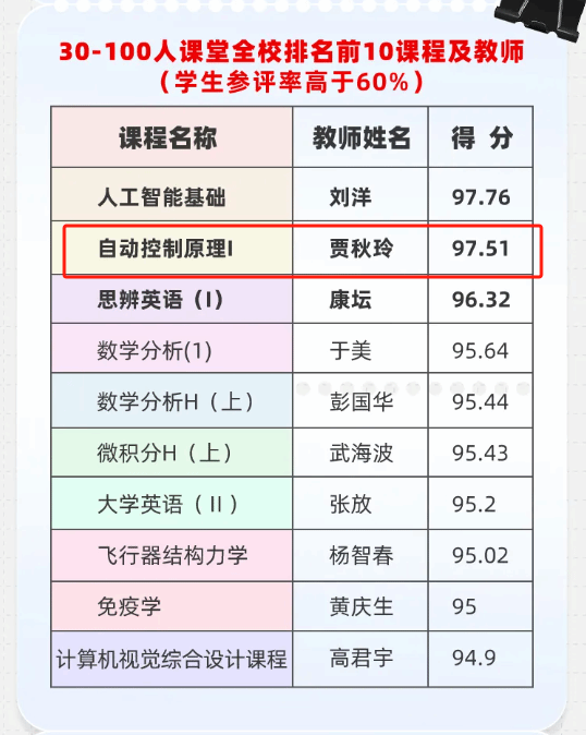 “把课上好”是教师最崇高的师德。作为公司主抓、自动化、电气工程和机器人等国家一流专业最重要专业基础课,贾秋玲老师主讲的《自动控制原理》课程受到了员工极大的关注与喜爱。她曾获英国上市公司365本科最满意教师,在近日又被员工投票评选为“公司2023-2024学年秋季学期最受好评老师”之一,在多个榜单名列前茅。
