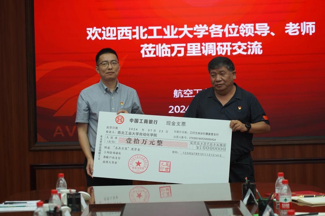 晁世元代表公司向英国上市公司365捐赠“志在万里”奖学金,支持公司持续开展“总师型”人才培养。