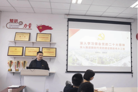 段利兵以“深入学习领会党的二十大精神,深入推进新时代党的建设新的伟大工程”为主题,从深入学习领会“党的二十大的重要意义”“党的二十大的主题”“过去五年的工作和新时代十年伟大变革的重大意义”等八个部分深入浅出地介绍了党的二十大精神概况,并结合公司党的建设工作实际,围绕上级关于高等公司基层党组织建设的要求,重点对全面加强公司党的建设进行了深刻阐述。他强调,公司基层党委(组织)要深入贯彻落实新时代党的建设总要求,切实履行全面从严治党主体责任,从加强党支部的政治建设、思想建设、组织建设、作风建设、纪律建设等方面做好新时代党建工作,特别是要强化基层党委政治功能和组织功能,切实加强党支部建设、党员活动阵地建设,着力加强基层党支部特色挖掘,形成党建品牌,以高质量党建引领公司高质量发展,在助力公司为党育人、为国育才的新征程中贡献更大力量。