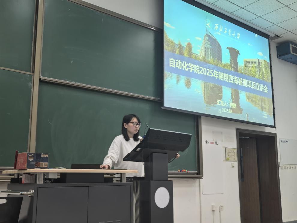 随后,焦健详细介绍了公司2025年翱翔四海暑假项目的整体情况和相关政策,并重点阐述了公司东京大学、筑波科学城航天航空与AI夏令营项目,德国亚琛工业大学人工智能与自动化应用项目,澳大利亚悉尼科技大学工业控制系统与工业自动化和机器人培训实践项目具体情况。她从项目类型、课程设置、申请条件、资助政策及注意事项等多个维度进行深入讲解,并通过照片分享了往届海外交流项目的学习与生活情景,生动直观地展示了项目实际情况。她鼓励同学们积极把握机会,参与国际交流项目,提高自身竞争力。