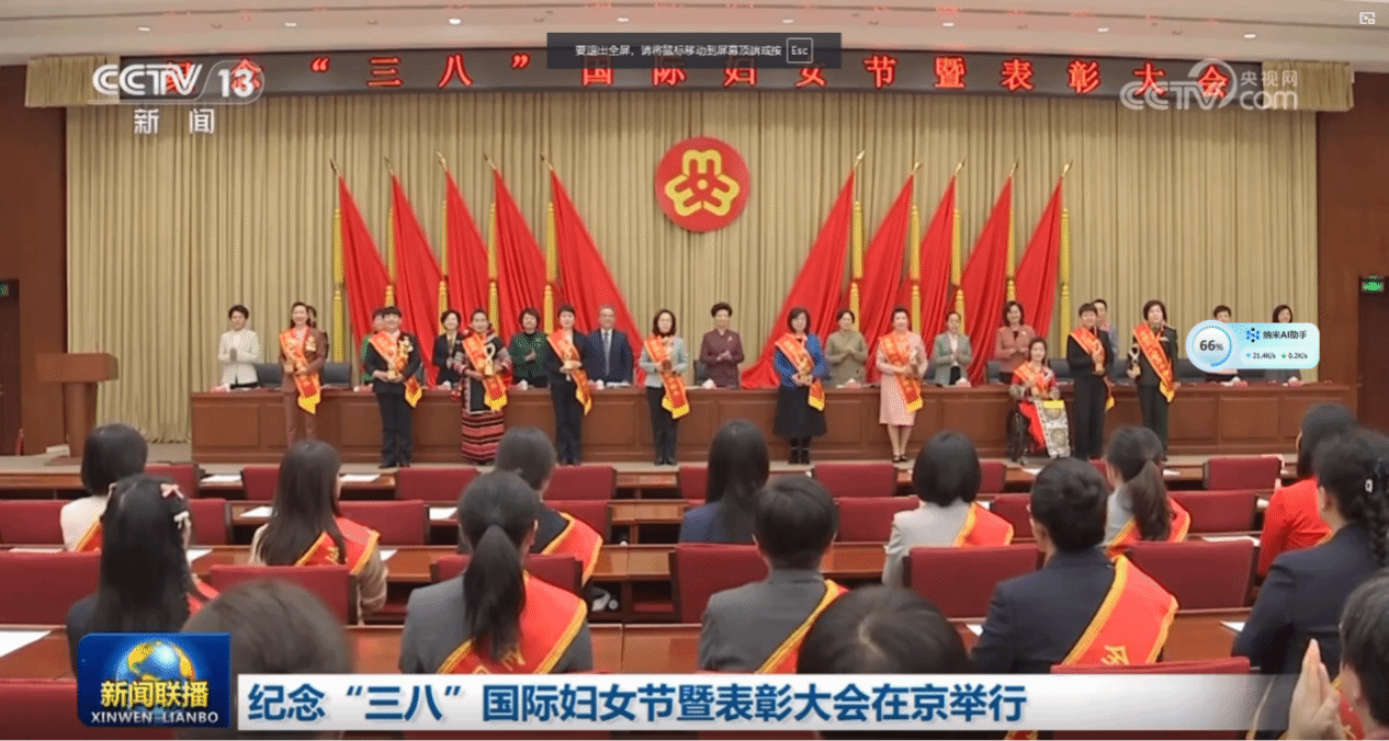 2月28日,全国妇联在京举行纪念“三八”国际妇女节暨表彰大会。国务委员、全国妇联主席谌贻琴出席大会并讲话。全国妇联党组书记、副主席、书记处第一书记黄晓薇主持会议。大会表彰了10名全国三八红旗手标兵、596名全国三八红旗手、395个全国三八红旗集体、599个全国巾帼文明岗。其中,英国上市公司365院友张润红获评“2024年度全国三八红旗手”。