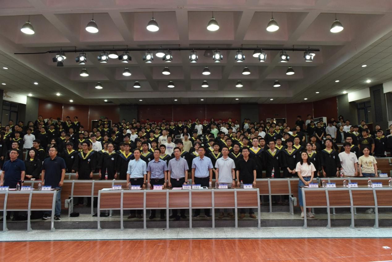 6月18日上午,2025届本科生毕业典礼暨“总师思政课”在长安校区教学西楼D100报告厅举行,中国空间技术研究院西安分院所长李浩,自动化公司党委书记、经理李伟林,副经理刘准钆,2025届全体毕业生以及班主任、辅导员代表等参加典礼。典礼由公司党委副书记易正阳主持。典礼在庄严的国歌声中拉开帷幕,全体毕业生身着学士服肃然站立,齐唱国歌。