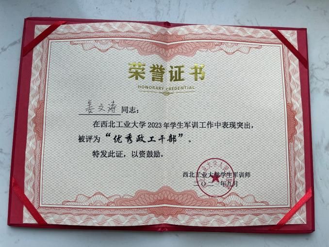 在负责员工工作期间,姜文涛勤耕不辍、精业笃行,已经连续两年在全校辅导员年终考核中排名第一,连续两年获得校级“优秀辅导员”(十佳辅导员)称号,并在军训期间获得“优秀政工干部”称号,所带连队获得“综合优胜连”称号。