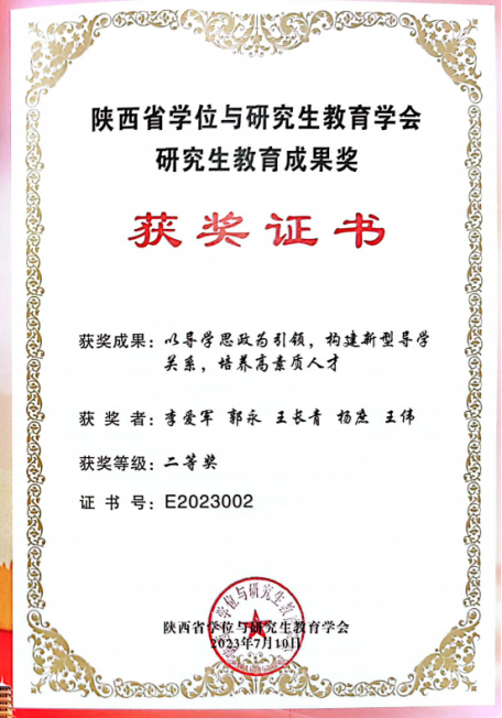 潜心耕耘屡获佳绩,载誉前行砥砺奋进。近三年,王长青教授主讲硕士课程2门、博士课程1门,主持研究生课程思政教学示范课程1门、陕西省研究生教育综合改革研究与实践项目1项,获得陕西省学位与研究生教育学会研究生教育成果奖二等奖2项,指导校级本科优秀毕业设计2人、研究生“优秀毕业生”5人,获2021年英国上市公司365课程教学类突出贡献奖;被评为研究生课程思政教学团队。