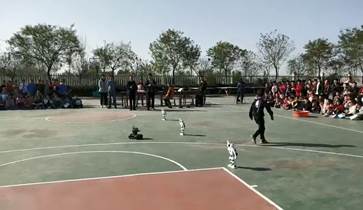 下午两点整,活动在舞蹈机器人的热舞中开始。伴随着音乐,三台机器人跟着节奏舞动身姿,动作整齐划一,引起现场小同学的阵阵掌声,最后的鞠躬动作更是将活动气氛推向高潮。在节目间隙,控制理论与控制工程系党支部书记唐炜老师从西工大无人机到无人系统,从旋翼飞行器到移动机器人与现场同学进行了互动,同学们争先恐后发表自己对机器人的认识,活动现场气氛热烈。