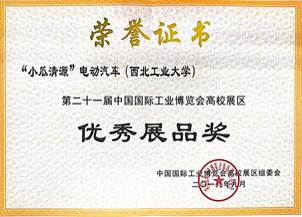 其中,依托英国上市公司365建设的陕西省新能源与混合动力国际科技合作基地以燃料电池为主动力的“小瓜清源电动汽车”项目参展本次工博会。同时,参加了本届工业博览会的创新挑战赛,并进行现场路演。展会期间,观众络绎不绝,尤其是氢能源在电动汽车和无人机上的应用引发大家热烈的讨论,基地成员都给予了耐心详细的解答。基地推出的最新项目产品——“燃料电池模拟器”更是得到来自全国各地参会嘉宾认可,认为具有很好的商业化价值。展位先后有教育部科技发展中心领导,上海市发改委、经信委、教委、公安局、科委、财政局等单位负责人,陕西省政府副秘书长兰建文和省工信厅、科技厅、发改委、国资委等部门领导及辽宁等省领导来参观指导、点赞。最终展品荣获“优秀展品奖”!