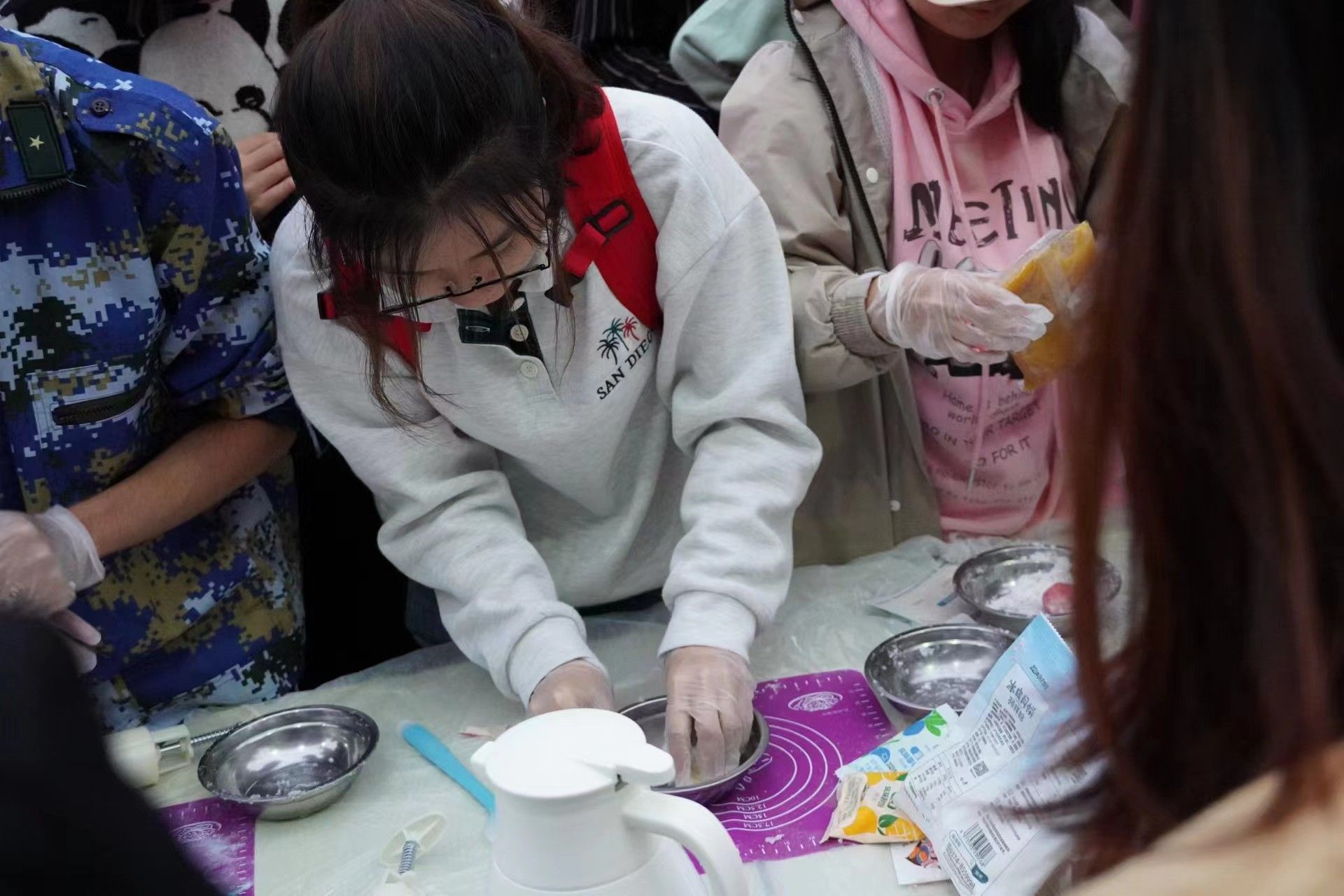 参与者们根据指导,选择不同的馅料,尝试不同的造型和装饰,制作出了心仪的月饼,并在制作过程中交流心得、分享创意。现场氛围热烈,排队等候及围观的同学众多,大家迫切地想参与到活动中来。