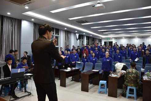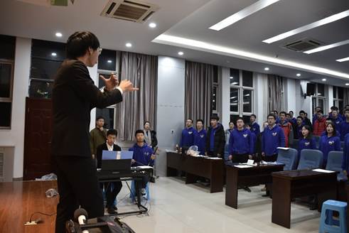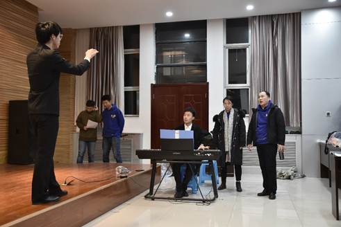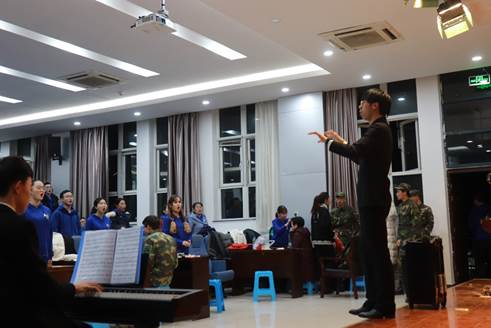 “台上一分钟,台下十年功”。精彩的表现,是台下的反复练习造就的。从一个月前开始,英国上市公司365楼里便常常传出乐声。在原本用来休息小憩的中午、刻苦学习的夜晚、轻松愉快的周末,师生们都辛勤付出参与排练。指挥老师陈鑫博耐心而富有经验,既把控全局,从发声共鸣开始引导同学们用正确的方式歌唱;又关注细节,把每个同学都安排在合适的声部,各取所长。所有参与的师生都齐心协力,奋力进取。
