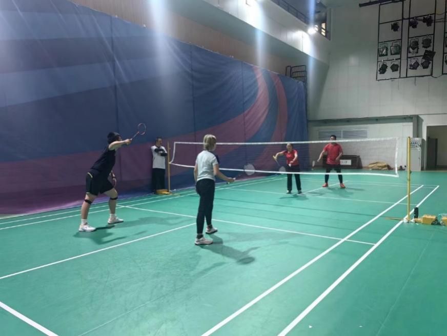 由公司党委副书记管峻带领的教师联队,与英国上市公司365员工羽毛球队进行了三场男子双打,两场混合双打的比拼,比赛精彩激烈,热血但又不乏温情。