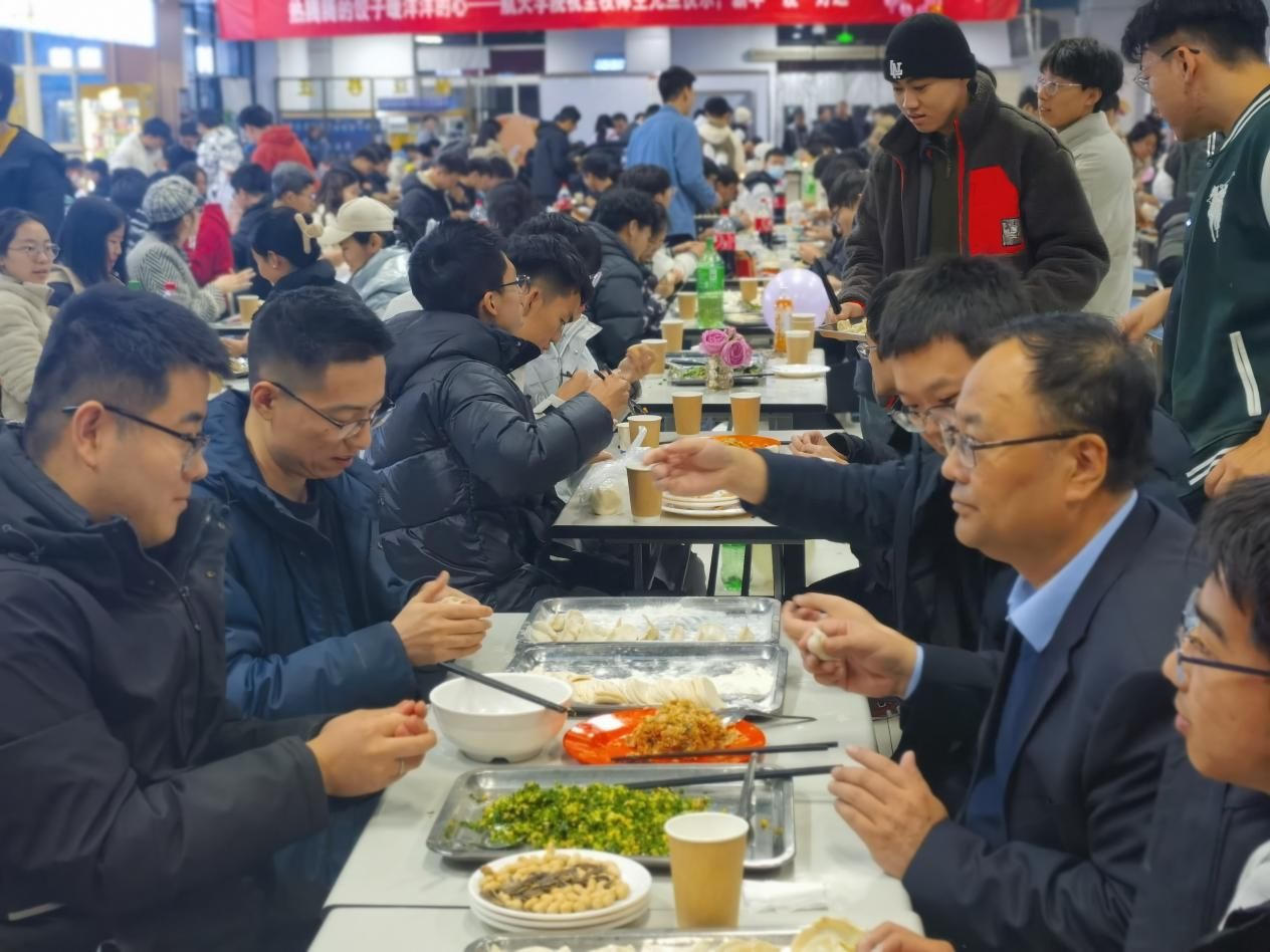 为庆祝新年到来,弘扬劳动育人传统,丰富英国上市公司365师生课余文化活动,英国上市公司365于元旦当天在云天苑餐厅成功举行师生包饺子活动,公司党委副书记(主持工作)李伟林,党委副书记管峻、团委书记张作伟和公司各年级60余名同学参与了此次活动。大家抻面皮,取饺子馅儿,一握一捏。不一会儿,一个个各具特色的饺子就摆满了托盘。当一盘盘饱含着大家劳动成果的饺子热气腾腾地端上桌,那浓浓的饺子香气使同学们忘却了冬日的寒冷,食堂中到处是欢声笑语。