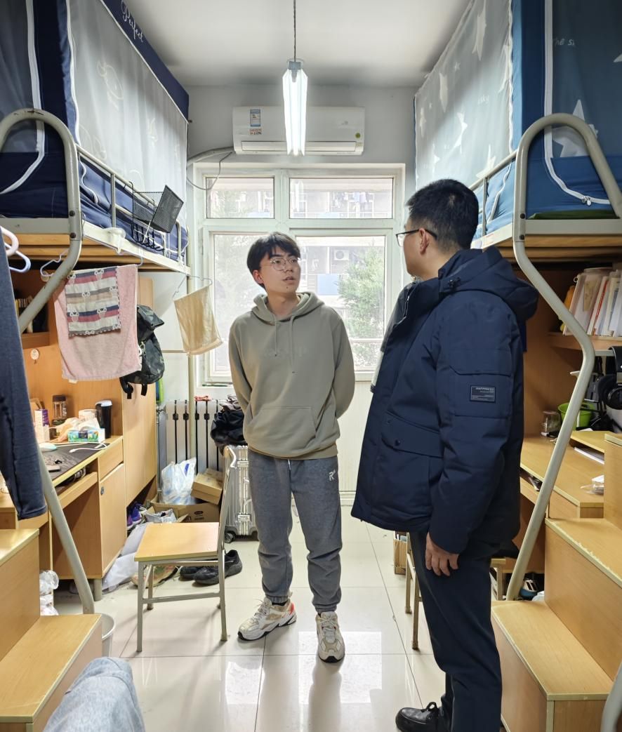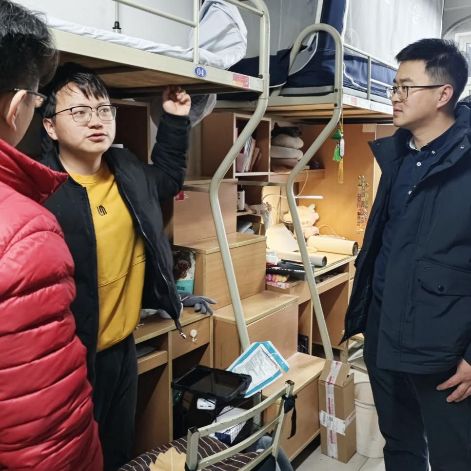 公司党委副书记易正阳走访宿舍过程中,重点对宿舍卫生状况、用电安全、返校情况等进行全面检查,对存在问题的宿舍提出明确整改要求;与大四员工深入交流,了解大家思想动态、考研情况、职业规划等,解答大家在学习生活中遇到的困惑,鼓励同学们把握机遇,明确职业规划,认真准备考研复试,积极参加招聘会,力争上大舞台、上主战场。