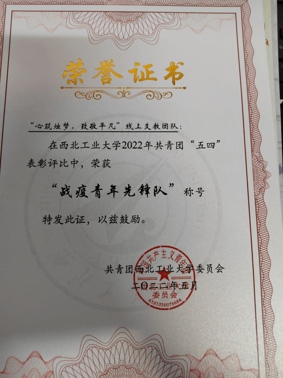“心筑烛梦”团队深耕线上支教志愿活动,自2020年至今,已累计为3300余名员工提供服务,总志愿服务时长达11万小时,受到员工和家长的一致好评。团队曾获2022年第四届云支教乡村教育全国优秀团队奖,2022年英国上市公司365寒假实践一等奖、战疫青年先锋队、优秀调研报告,2023年暑期社会实践二等奖等荣誉。