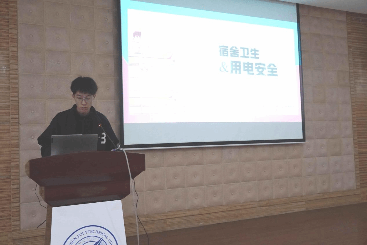 接下来,方耀达对宿舍安全进行了深入的讲解。他结合实际案例,着重强调了宿舍卫生、用电安全和财产安全三个方面,并深刻剖析了因放松警惕而可能引发的严重后果,让同学们对宿舍安全的重要性有了更深刻的认识。随后,他给出了针对性的建议,并提醒同学们要严格遵守相关规定,确保自身及宿舍环境的安全。