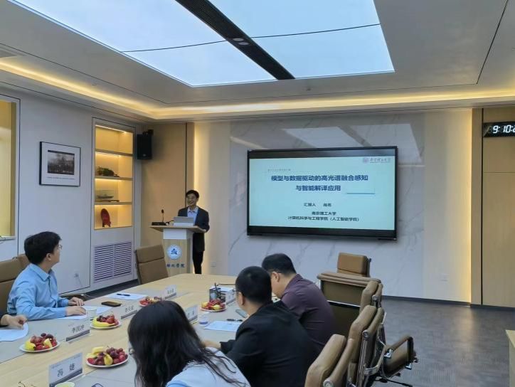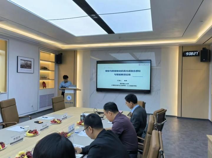 交流期间,南京理工大学肖亮教授作题为“模型与数据驱动高光谱融合与解译应用”的学术报告,以物理和数学模型为基础,深入浅出地介绍了目前深度融合网络、深度压缩感知网络等若干进展。他从目前数据驱动和模型驱动是深度学习研究的两类重要范式出发,介绍多光谱、高光谱遥感影像智能融合感知和解译的若干应用进展。另外,肖亮教授对国产化遥感智能分析平台架构等做了未来预测与展望。