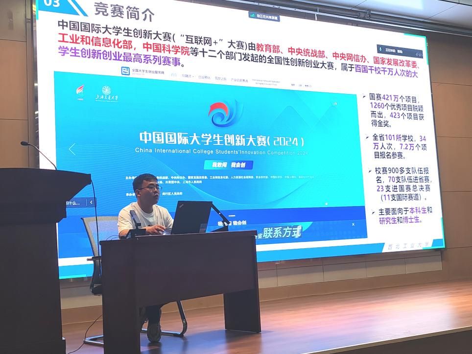 宋剑从创新大赛赛制设置及流程节点、优秀创新创业竞赛项目打磨方式方法、往期国赛金奖项目案例解析等方面进行了细致的赛事解读和经验分享。重点介绍了网评材料准备规范和要求,以及PPT结构设计、内容呈现、视觉效果等方面的要点、技巧和建议。