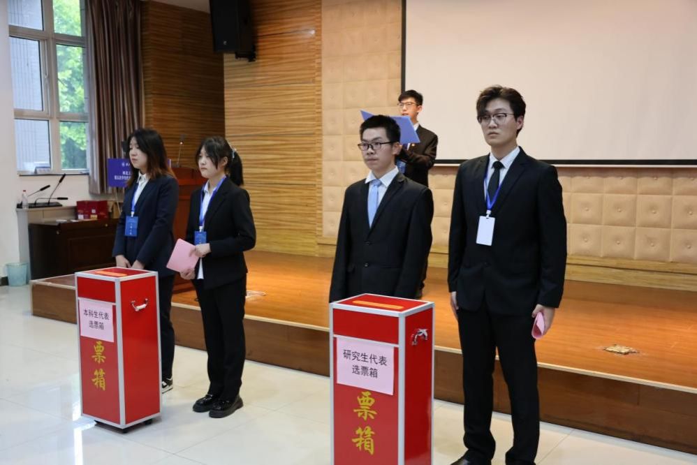 会议进行了公平、公正、公开的无记名投票选举,最终选举出由王赛博、师哲浩、何炯寮组成的新一届员工会主席团及由崔文瑞、张璇、张铭元组成的新一届研究生会主席团成员。选举结果由大会筹备委员会委员梅彩辉在会上宣布。