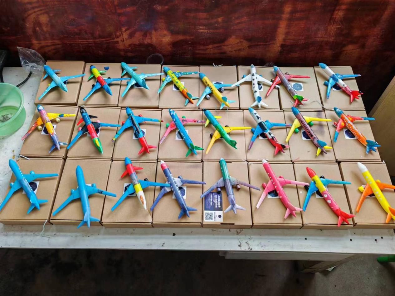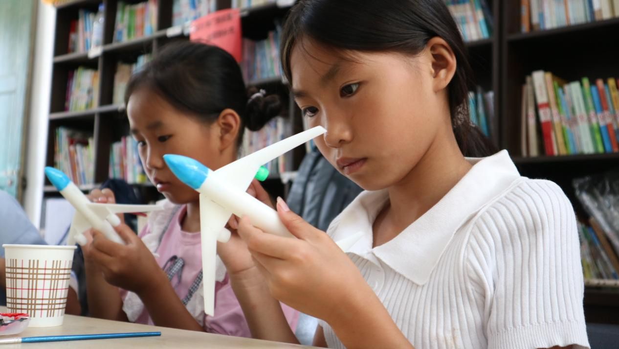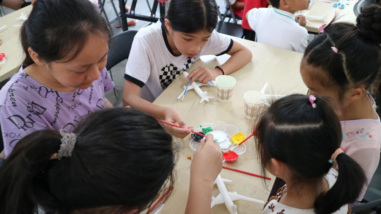 紧接着,孩子们还充分发挥自己的创意,利用颜料为飞机模型进行个性化的涂装。很快,一排排色彩斑斓、形态各异的飞机就展现在了队员们眼前。这些飞机模型承载着孩子们的梦想与希望,激发着孩子们对未知世界的好奇与向往。