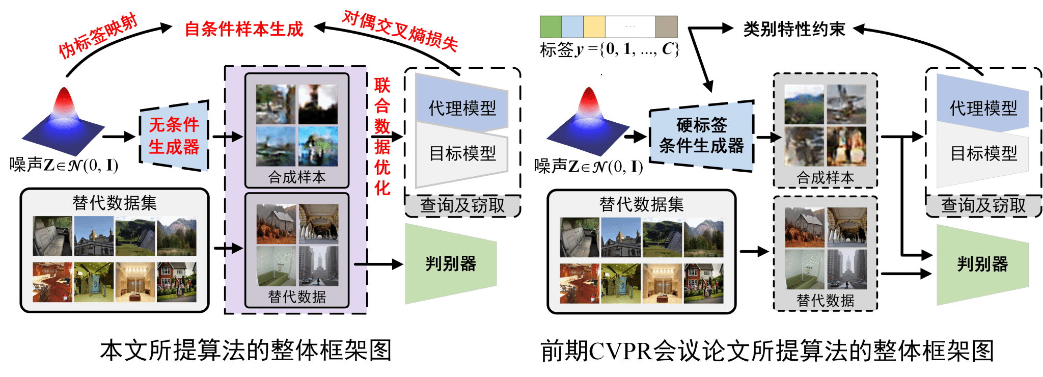 六、论文简介:无数据条件下窃取黑盒模型用于对抗攻击是领域内一个极具挑战性的研究课题。针对这一问题,本文从数据多样性视角出发,对前期CVPR会议论文进行了实质性改进:首先,为缓解生成器训练过程中潜在的模式崩溃问题,本文提出了一种联合数据优化方案,通过联合代理数据与合成数据来优化代理模型;其次,本文提出了自条件数据合成框架,通过提取分组类信息来构建伪类别映射框架,维持样本多样性的同时保留类别特定的约束。在此基础上,本文进一步设计了对偶交叉熵损失,以增强合成样本的多样性。为验证方法有效性,本文在四个标准数据集上进行了大规模实验,涵盖了八种不同的模型架构。结果表明,与现有方法相比,本文所提出的方法在攻击成功率等关键指标上均建立了显著的优势。