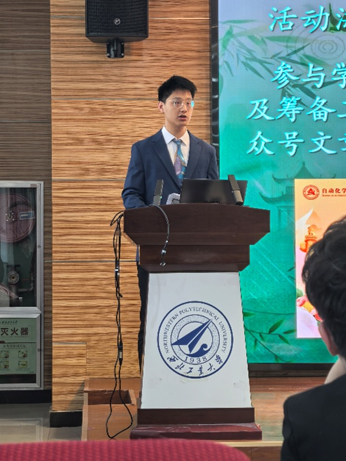 大会第三项,各部门代表汇报本学年工作进展。按照权益中心、学习实践部、志工部、组织部、体育部、外联资源部、宣传中心、团委办公室和文艺部的顺序,金景弘、郑梦圆、陈曼茜、程涵、谢昊朋、王思昱、王柯尧、杨博丞和马雨竺依次上台汇报。他们的汇报内容涵盖运动会、元旦游园会和迎新晚会等多项活动,并结合招新历程和工作概况,展现部门风采和协作精神,同时对工作中的不足以及潜在问题给予反思,为后续工作指明改正方向与修正措施。