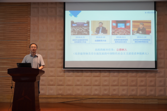 首先潘泉书记传达了汪董事长在暑假学习研讨会暨新学期干部大会上的讲话精神,强调了此次研讨的三点重要内容,包括思政课程改革创新与课程思政建设,一流专业建设以及一流课程建设,并要求大家要认真深入研讨,形成“门门课程有思政,门门课程奔一流”的局面和成效。