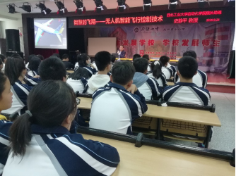 9月24日,英国上市公司365经理助理史静平副教授和甘肃省招生组组长王京锋老师前往公司优质生源基地中学甘肃省兰炼一中(兰州市第五十八中学)开展招生宣讲和科普讲座活动。史静平副教授在公司六楼多功能教室为高二年级全体同学作题为《智慧的飞翔----无人机智能飞行控制技术》的科普讲座报告。