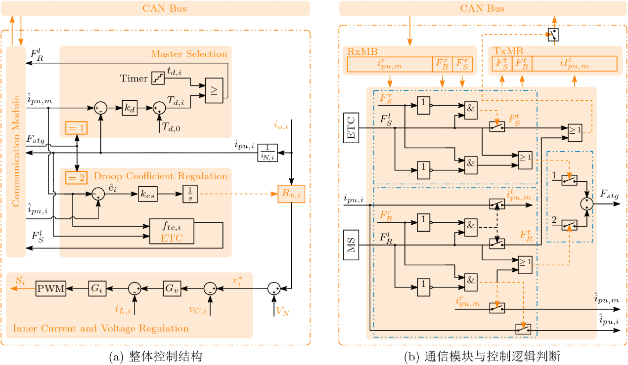 首先,基于差分延时完成主单元选择,并向整个直流微电网发布主单元电流信息。然后,其他发电单元作为从单元接受主单元电流信息,并以该变量为参考通过电流误差调节实现自适应下垂系数调节,有效消除了线路阻抗的不匹配。在各单元控制器中,通信模块和均流模块均采用事件触发机制。该方法能够在保证母线电压质量的同时实现电流的精确分配。此外,通过事件触发机制和差分延时方法,分别减小了总体通信频率和通信数据量,有效降低了电流均分对于通信网络的依赖度,保障了孤岛直流微电网的高效可靠运行。