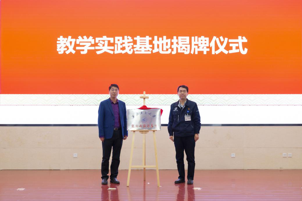 黄攀峰经理和杨卫平董事长共同为就业与实践基地揭牌,并为相互聘任的14名特聘技术专家、5名校外班级导师、19名专业硕士校外导师颁发证书。