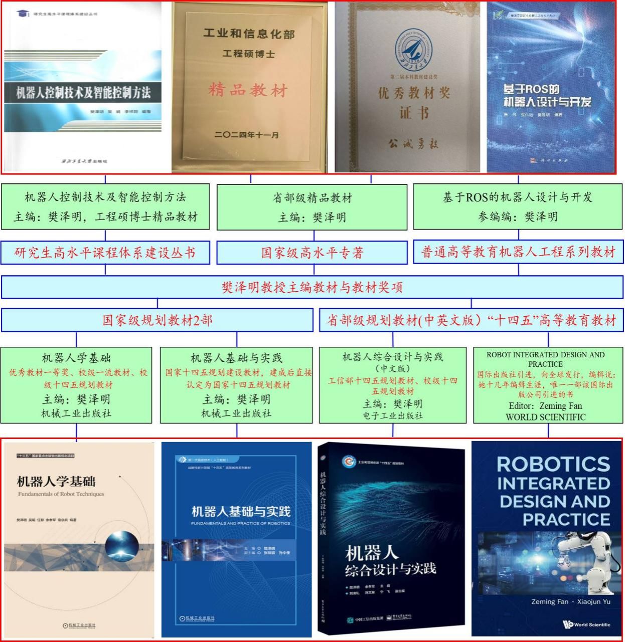 在教学方面,樊教授开发了基于“互联网+数字孪生+AI技术”的线上线下混合式教学平台,以此为支撑,课程负责人建设:国家级一流课程1门、省级各类一流课程3门、校级各类一流课程6门;第一主编:教材6部和教改专著3部,其中,中国机械行业优秀教材一等奖(最高奖)、国家重点出版物出版项目2部、国家战略新兴领域“十四五”规划教材1部(直接参评国家“十四五”规划教材)、已推荐参评国家“十四五”规划教材1部、国际著名出版社出版英文教材1部、工业和信息化部精品教材1部、工业和信息化部“十四五”规划教材1部,国家出版基金项目专著1部;专业负责人主持:《机器人工程》专业建设与改革,获国家级一流专业,2023年软科评级“A+”和软科排名全国“第六”;第一完成人获得:省级教学成果一等奖1项、校级教学成果奖6项;第一完成人获得:省级以上教学竞赛奖20余项,其中全国高校教师教学创新大赛荣获一等奖(本次大赛,全国高校一等奖只有12项、二等奖40项、三等奖197项,该奖项为陕西省唯一一等奖);第一完成人获得:中国机械行业公司产品名师、校级卓越名师奖等教学荣誉奖10余项;负责人获得:优秀教学研究一等奖2项、西部联盟竞赛奖1项、优秀基层教学组织奖1个和课程思政示范课程团队1个。