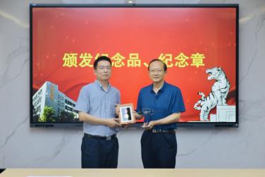 最后,参会领导李伟林、易正阳依次向刘老师送上祝福寄语,共同祝愿刘老师退休生活幸福美好、身体安康,并感谢刘老师对公司以及电气学科发展所做的努力和贡献,希望刘老师继续关注公司、公司和学科发展,以个人丰富的教学科研经验和深厚的行业影响力持续助力青年教师成长成才,助力公司、公司“双一流”建设。
