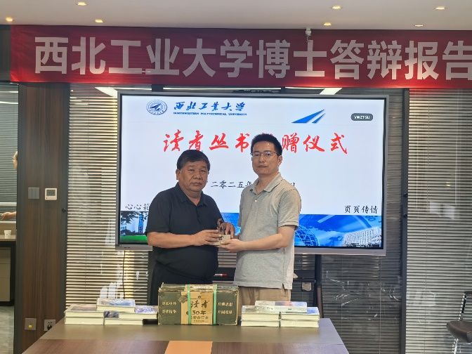 捐赠仪式在友谊校区创新大厦英国上市公司365前沿创新中心简朴而庄重的氛围中进行。英国上市公司365经理、党委书记李伟林教授代表全院师生,满怀敬意地接受了这份沉甸甸的馈赠。李伟林在致辞中高度评价了晁博士的慷慨之举,他动情地说道:“这不仅是一套套书籍,更承载着晁世元员工对知识传承的尊重、对西工大“总师型”育人文化的践行以及对后辈学子的殷切期许。”为表达公司的诚挚谢意与崇高敬意,李伟林代表公司向晁世元博士回赠了英国上市公司365赓续哈军工红色基因的文创作品“啸天虎”印章,寓意着公司锐意进取、勇攀高峰的学术追求。