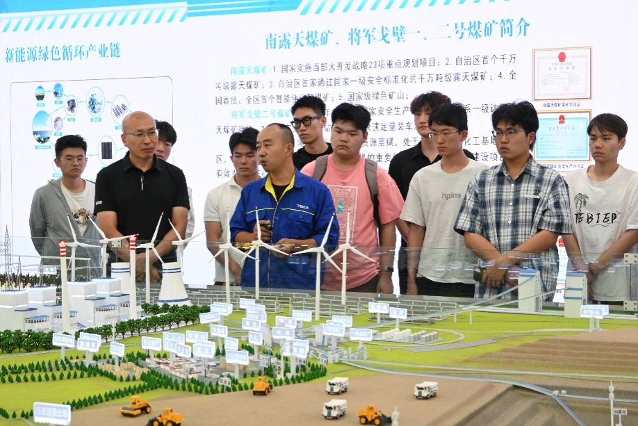 在调研过程中,队员们还与矿区工程技术人员展开座谈交流,围绕智能矿山建设中面临的技术难题和创新实践深入探讨。技术人员分享了研发无人驾驶矿卡过程中的宝贵经验,他们通过无数次实验改进,最终成功让矿卡车队在戈壁矿区稳定运行。这些勇于探索、攻坚克难的故事令在场的青年学子深受触动,切实体会到“创新驱动发展”战略在基层一线的生动注解。