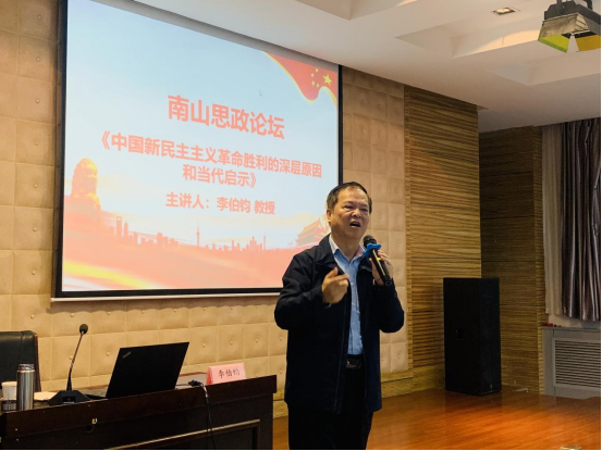 为了更好地促进党史学习教育向纵深发展,持续落实公司师德专项教育,促进公司立德树人建设工作,结合“教师素质提升计划”,英国上市公司365举办南山思政论坛系列讲座,2021年10月9日,首期讲座邀请哲学教授、西安市政协常委、西安市政协决咨委专家、陕西省委党校特聘教授李伯钧为公司青年教师、积极分子讲授《中国新民主主义革命胜利的深层原因和当代启示》党课。公司党委副书记马玥、管峻及百余名师生现场聆听,本次活动由管峻副书记主持。