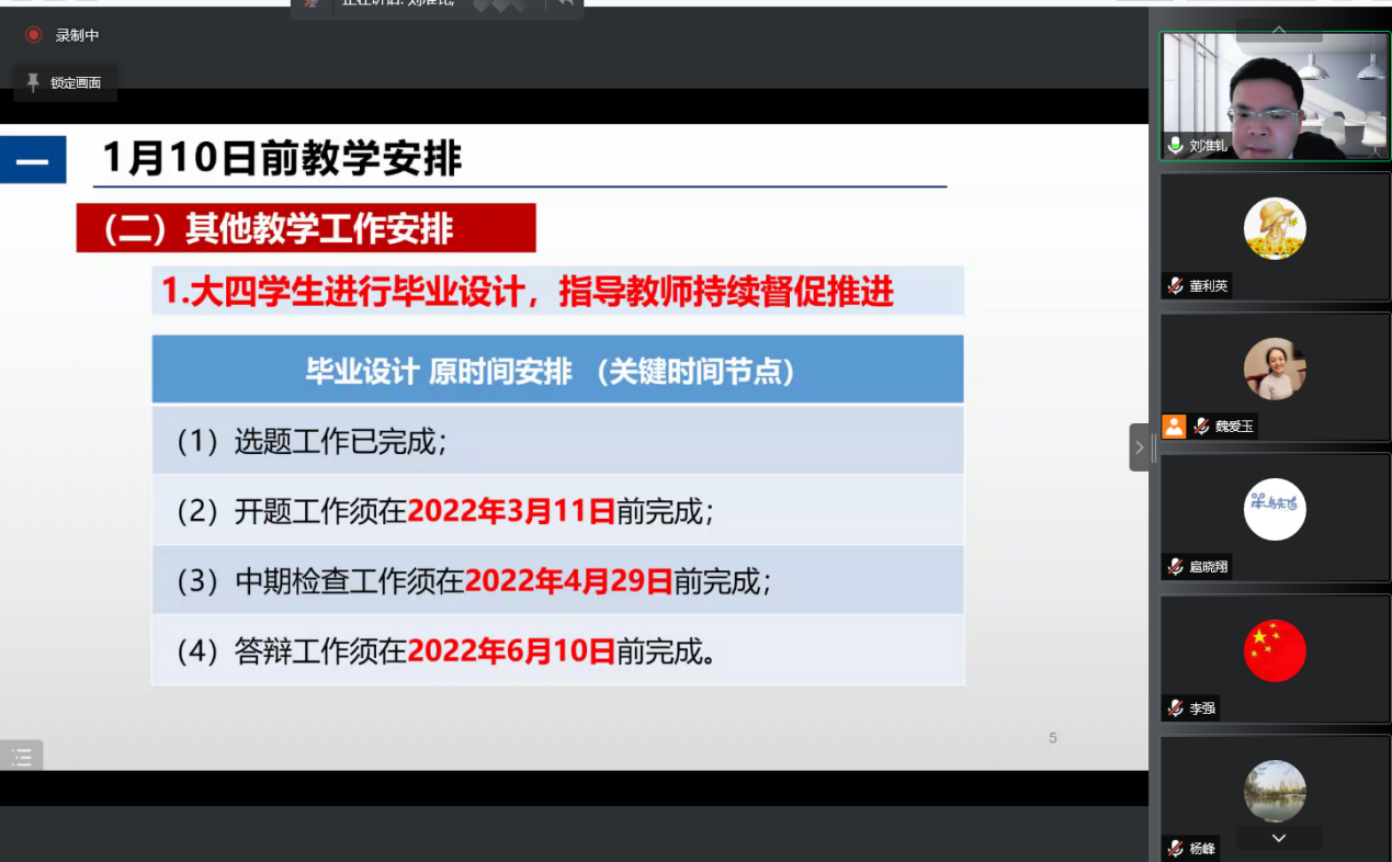 公司党委书记韩军伟首先传达了公司疫情防控会议最新精神和要求,号召全体教师严格遵守公司疫情防控各项要求,全院教师尤其党员干部发挥带头作用,弘扬“人人为我,我为人人”的主人翁精神,积极参加公司志愿者活动。刘准钆副经理和王小旭副经理分别对疫情期间本科和研究生教学工作进行了部署安排,管峻副书记详细汇报了目前员工管理相关要求,许斌副经理传达疫情期间科研管理工作安排。