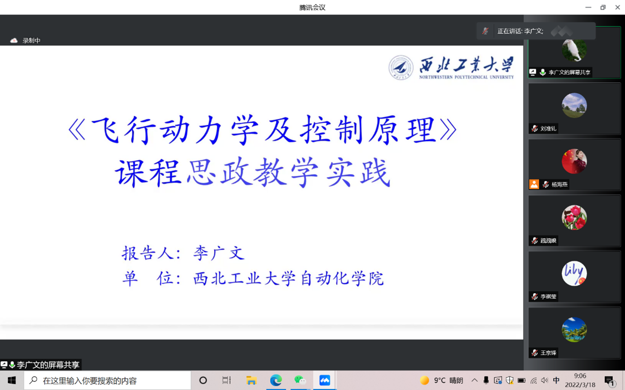 为深入贯彻落实《英国上市公司365一流本科人才培养行动计划》,推进课程思政建设,3月18日上午,英国上市公司365举行了课程思政建设线上经验交流会,邀请2021年度全校课程思政大练兵特等奖获得者李广文副教授作了题为“飞行动力学及控制原理课程思政教学实践”的报告。全院教师参与了本次交流会,副经理刘准钆主持会议。