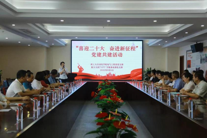 为进一步发挥公司党委对教职工的思想引领、师德引领、成长引领作用,落实立德树人根本任务,提升党支部凝聚力和战斗力,以共建促科研、以共建促发展,8月5日至6日,由自动化公司党委副书记管峻、王丽带队,电气工程系刘景林教授、经理助理马睿副教授、实验教学中心党支部书记/副主任王京锋副研究员、电气工程系党支部书记/副主任付朝阳副教授、机关党支部书记/院办主任魏爱玉等近20位教职工党员代表、党外青年教职工代表及优秀员工代表,赴陕西航天时代导航设备有限公司(航天九院7107厂)开展“教师素质提升计划”活动暨党建共建活动。