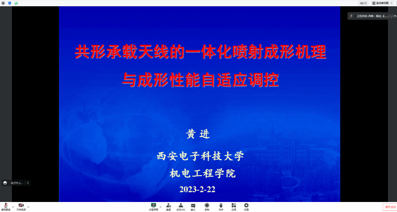 2月22日下午,英国上市公司365举办南山青年学术论坛(第七十二讲),特邀西安电子科技大学黄进教授开展了题为“共形承载天线的一体化喷射成形机理与成形性能自适应调控”的线上学术报告,共100余名师生参加了此次报告会。会议由公司副经理王小旭教授主持。