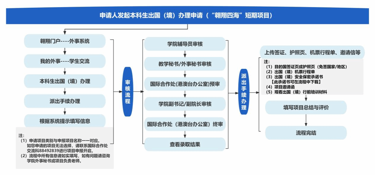 3. 参照下图登录翱翔门户-外事系统进行网上手续办理。