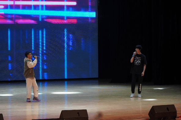 舞蹈和歌曲相继而来,看管理公司带来舞蹈《ILLUSION》,听九弦音声乐队带来歌曲《伤心的人别听慢歌》。