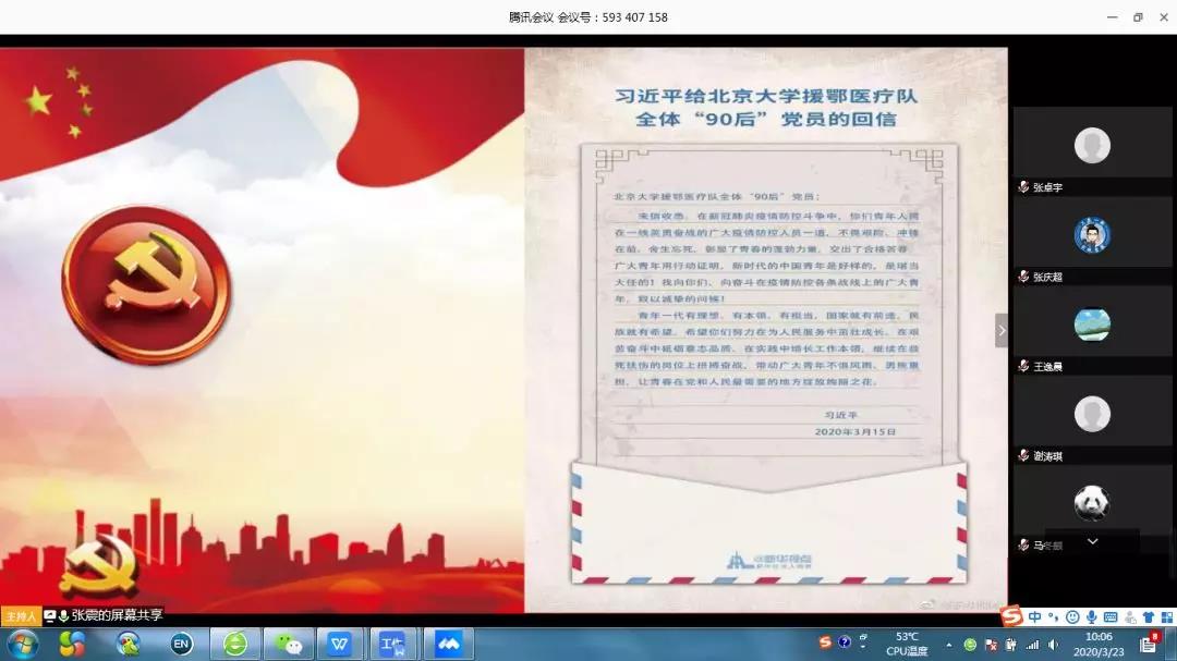 (1)学习交流习近平总书记给北大援鄂医疗队90后党员回信;