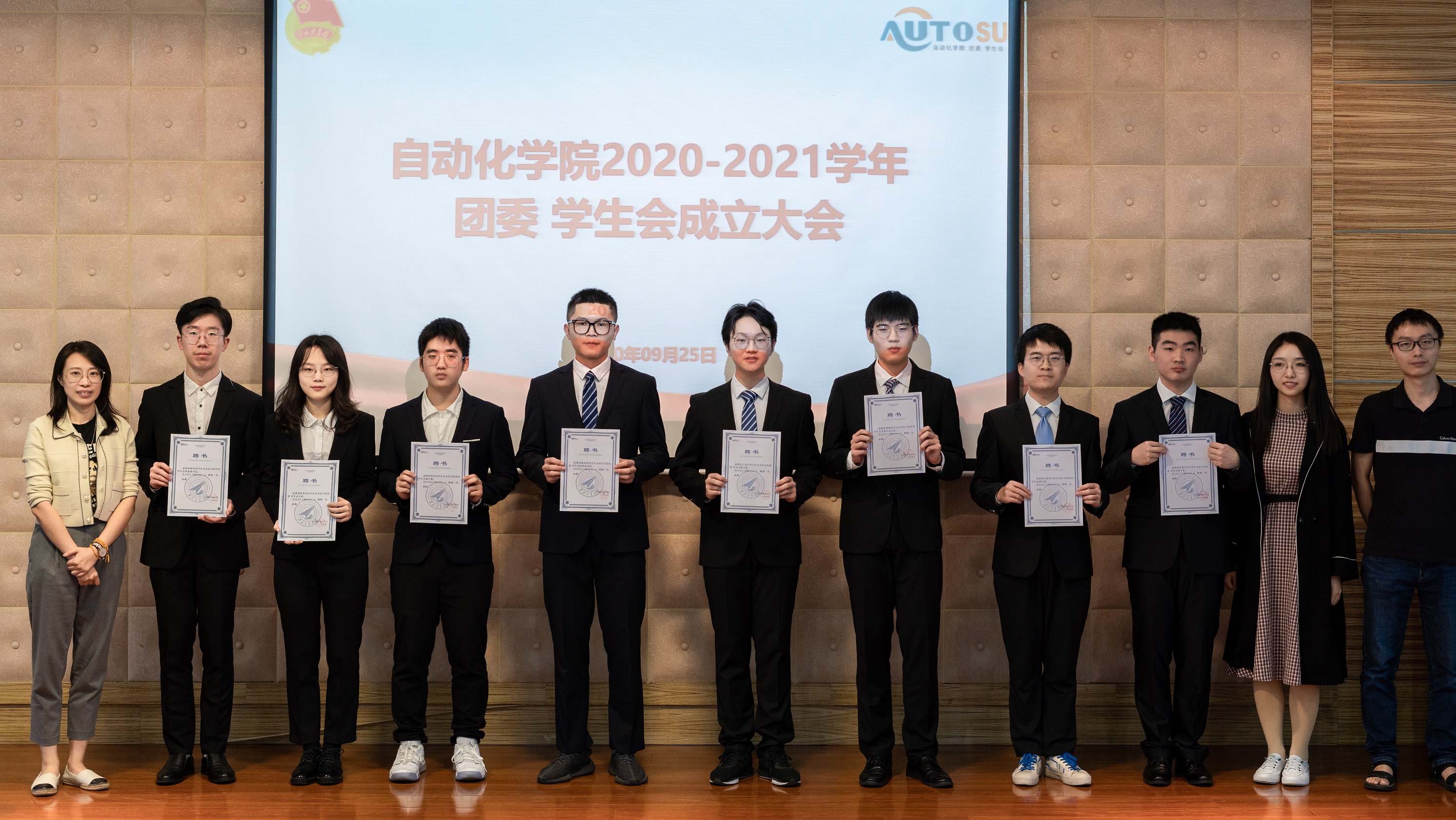 接着马玥书记,姚文利老师,李航老师,赵鑫老师和肖磊为英国上市公司365团委 员工会主席团成员颁发聘书。