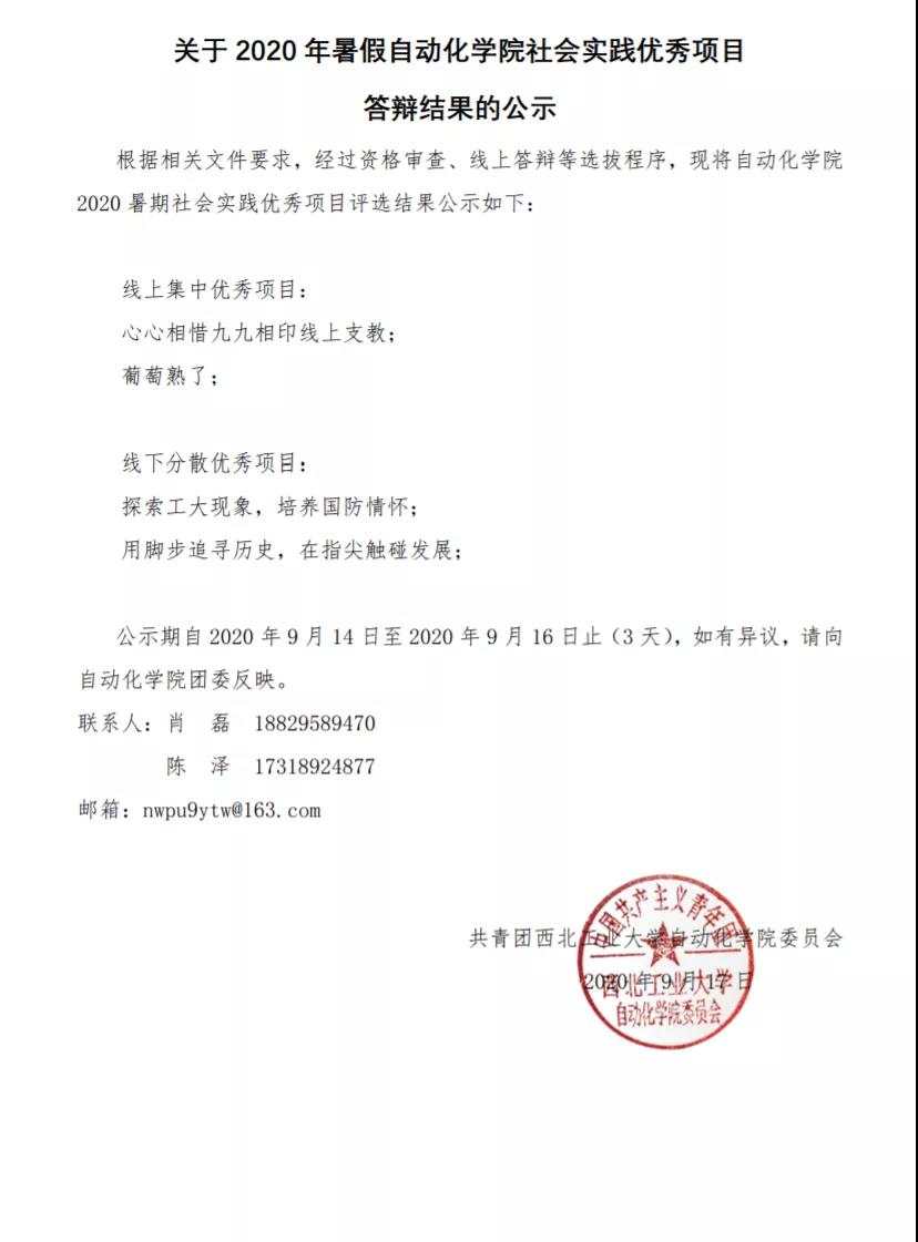关于2020 年暑假英国上市公司365社会实践优秀项目答辩结果的公示